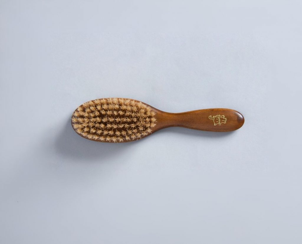 持ち手にネコのマークが刻印された、ネコちゃん専用のブラシです。コシのしっかりした豚毛が毛並みを整え、毛艶をきれいに保ちます。遊びながらブラッシングできるので、ネコちゃんのお手入れ習慣としてもおすすめです。